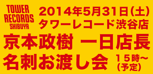 | 2014.5.1 | タワーレコード渋谷店に超巨大・京さま広告が出現!(〜5/31まで)![]() ![]() |